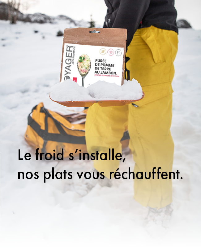 Confectionnée par des amoureux de la nature, pour des amoureux de la nature, la gamme de repas lyophilisés VOYAGER est conçue pour permettre à chacun de savourer un repas sain et bon, tout en profitant pleinement de moments d'évasion et de liberté: