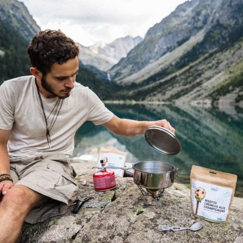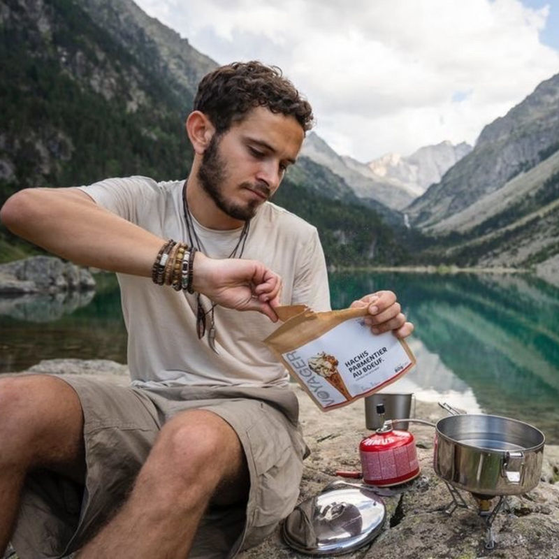 Pas besoin de réfrigérateur ! Les sachets de plats VOYAGER supportent les intempéries, le froid, la chaleur, l’altitude, la profondeur. N’ayez pas peur de partir à l’aventure !